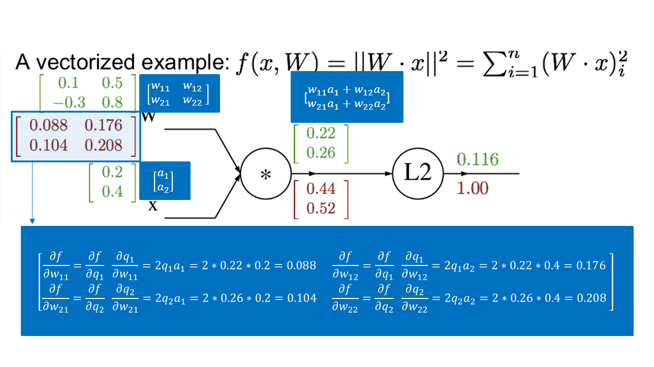 $\frac{\partial f}{\partial w}$는 vectorized term으로 나타내면 $2q\bullet x^T$로 표현할 수 있다.