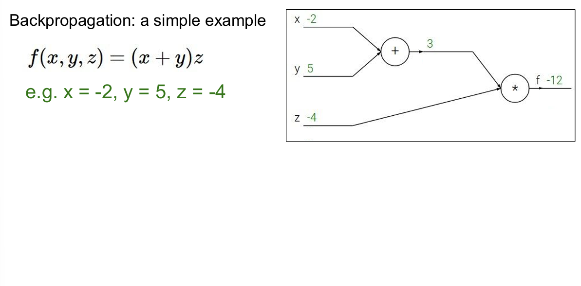2) $(x+y)*z$ 지점(출력)을 $f$라 지정하며 값을 적어준다.