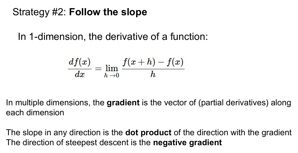 반면, 도함수를 직접 구해 Optimization 하는 방법은 Analytic gradient 라고 부른다. 이 방법은 빠르며 정확하지만 에러가 발생할 수 있다.