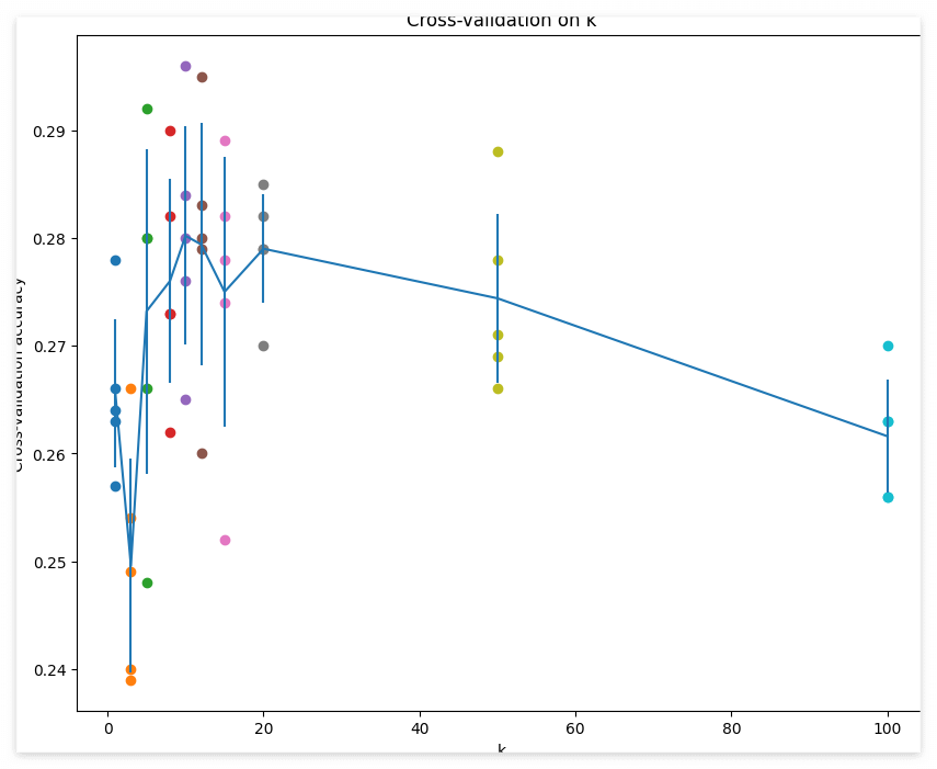 k_to_accuracies[k] = accuracy_temp