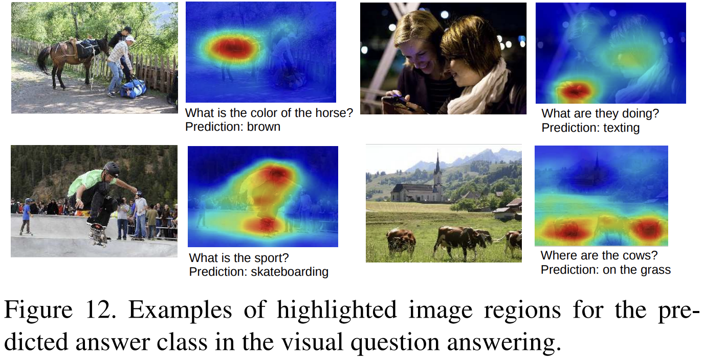Fig 12에서 볼 수 있듯이, 논문의 접근법은 예측된 답변과 관련된 이미지 영역을 정확히 강조하는 결과를 볼 수 있습니다.